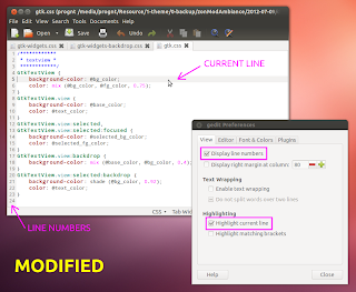 Like you can see in the screenshot above, the current line is not highlighted, just like other lines in the main text area. And also, the line numbers is displayed without any difference from the main text area.